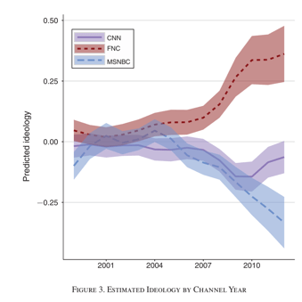 케이블TV 뉴스가 처음부터 뚜렷한 색채를 드러낸 건 아닙니다. 폭스(Fox) 뉴스는 미국이 이라크를 침공한 뒤인 2004년부터 보수적인 색채를, MSNBC는 오바마 대통령이 취임하기 전인 2007년부터 진보적인 색채를 강화했습니다.