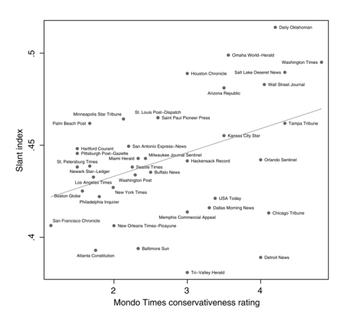신문사마다 정치적인 성향, 논조가 다른데, 특히 지역 신문사의 경우 주요 독자층, 즉 그 동네 사람들의 정치적인 성향에 좌우되는 경향이 있습니다. 가장 왼쪽에 있는 샌프란시스코 크로니클이 대표적인 예죠.