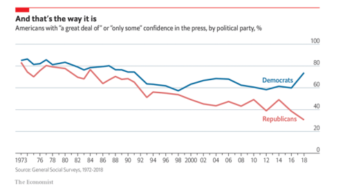 특히 공화당 지지자들 사이에서 기성 언론을 향한 불신이 더 높게 나타납니다.