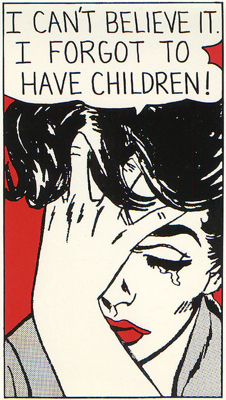 커리어를 우선 좇다가 가정(출산)을 꾸리지 못하게 된 집단 4의 난감한 상황을 표현한 로이 리히텐슈타인의 팝아트 작품 “맙소사, 아이 낳는 걸 까먹었다니…”입니다.
